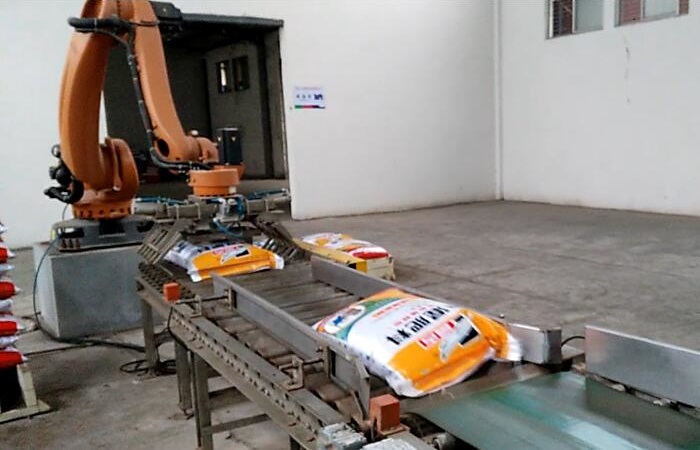 機(jī)械手碼垛機(jī)可對(duì)各種包裝袋、包裝箱進(jìn)行碼垛,具有堆垛速度快、自動(dòng)化水平高的特點(diǎn);碼放時(shí)全自動(dòng)分層編組,自動(dòng)化程度高;機(jī)械手碼垛機(jī)模塊化設(shè)計(jì),設(shè)備的穩(wěn)定性高,對(duì)托盤的適應(yīng)能力強(qiáng),只需在觸摸屏上作修改,不影響正常生產(chǎn);機(jī)器人本體由質(zhì)量輕、硬度高的高質(zhì)航空合金鋁制作,運(yùn)行能耗低。